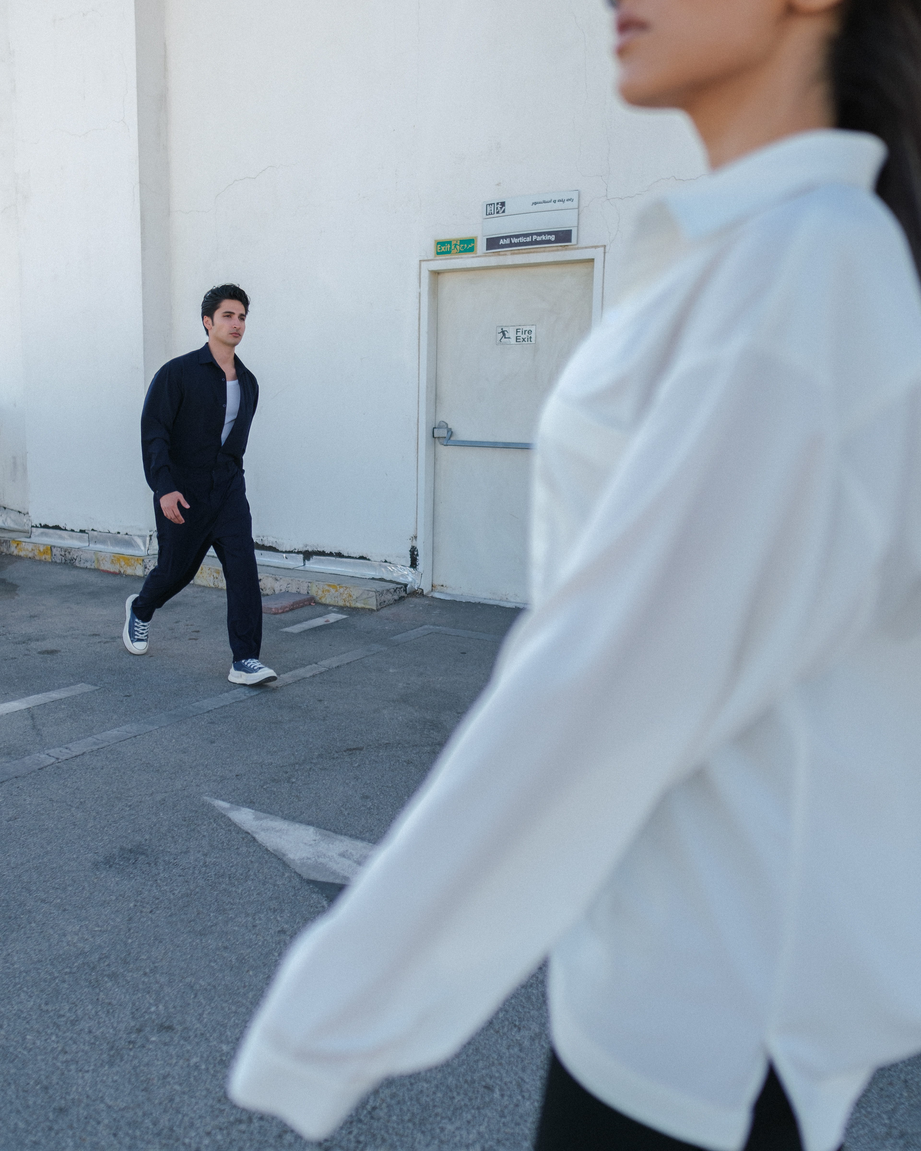 High above the city, the rooftop of an empty parking garage became our fashion set.