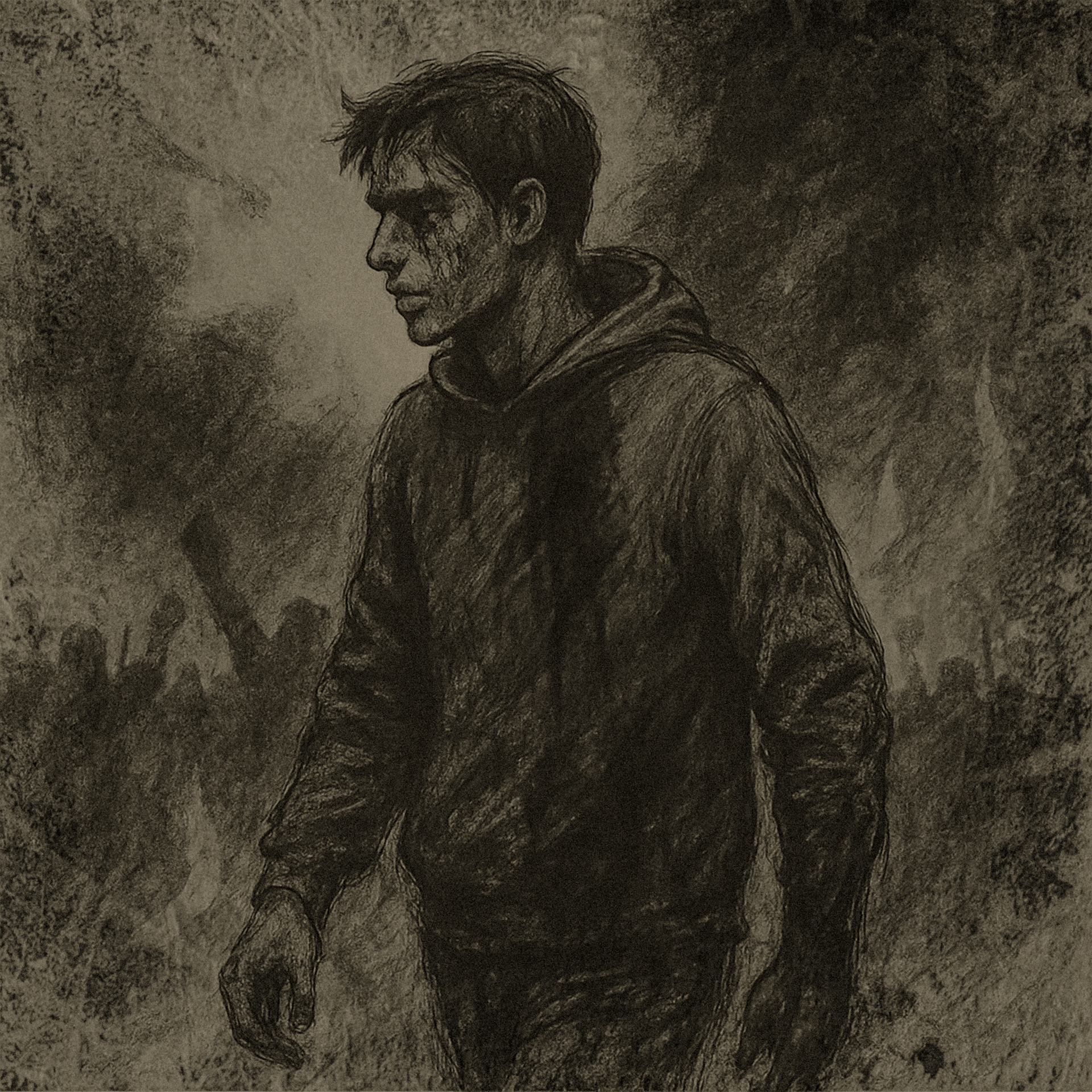 Designed with a cinematic, moody tone, the artwork immerses the viewer in the song’s dark and introspective atmosphere.