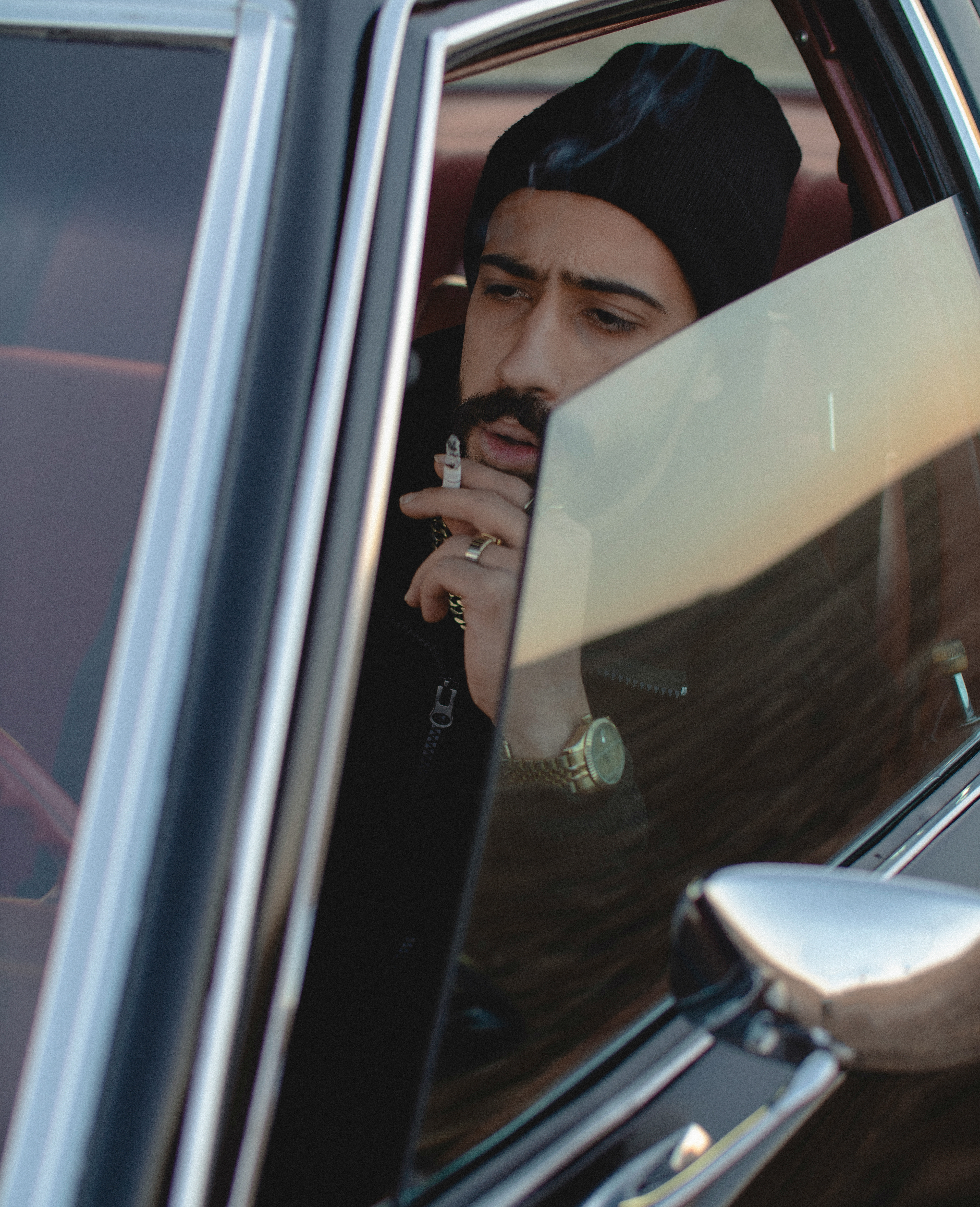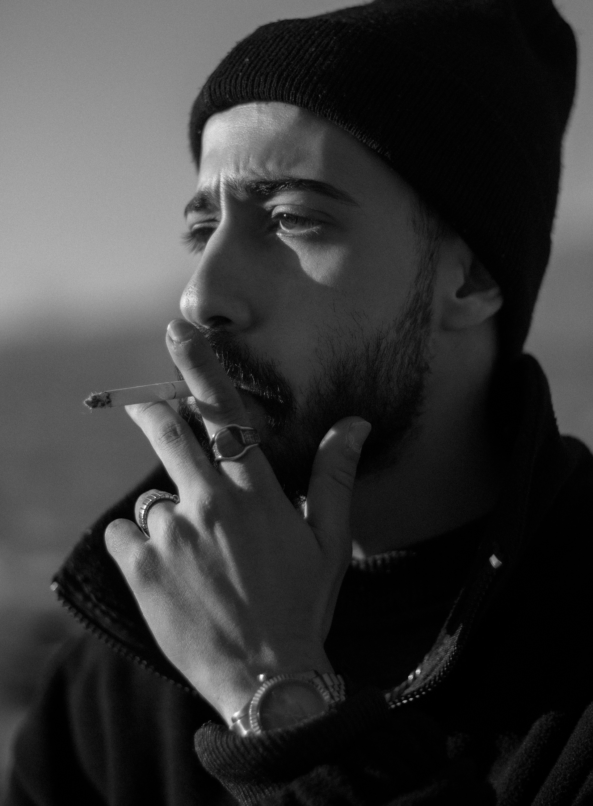 This cinematic portrait series features Behzad, his timeless classic car, and fleeting moments of solitude captured through the haze of smoke. Shot entirely in black and white, the project explores the raw atmosphere of a man, his ride, and the quiet ritual of smoking — evoking the nostalgia of old films and urban tales. Each frame merges vintage aesthetics with authentic expressions, using natural light and deep shadows to create a moody, dramatic narrative frozen in time.