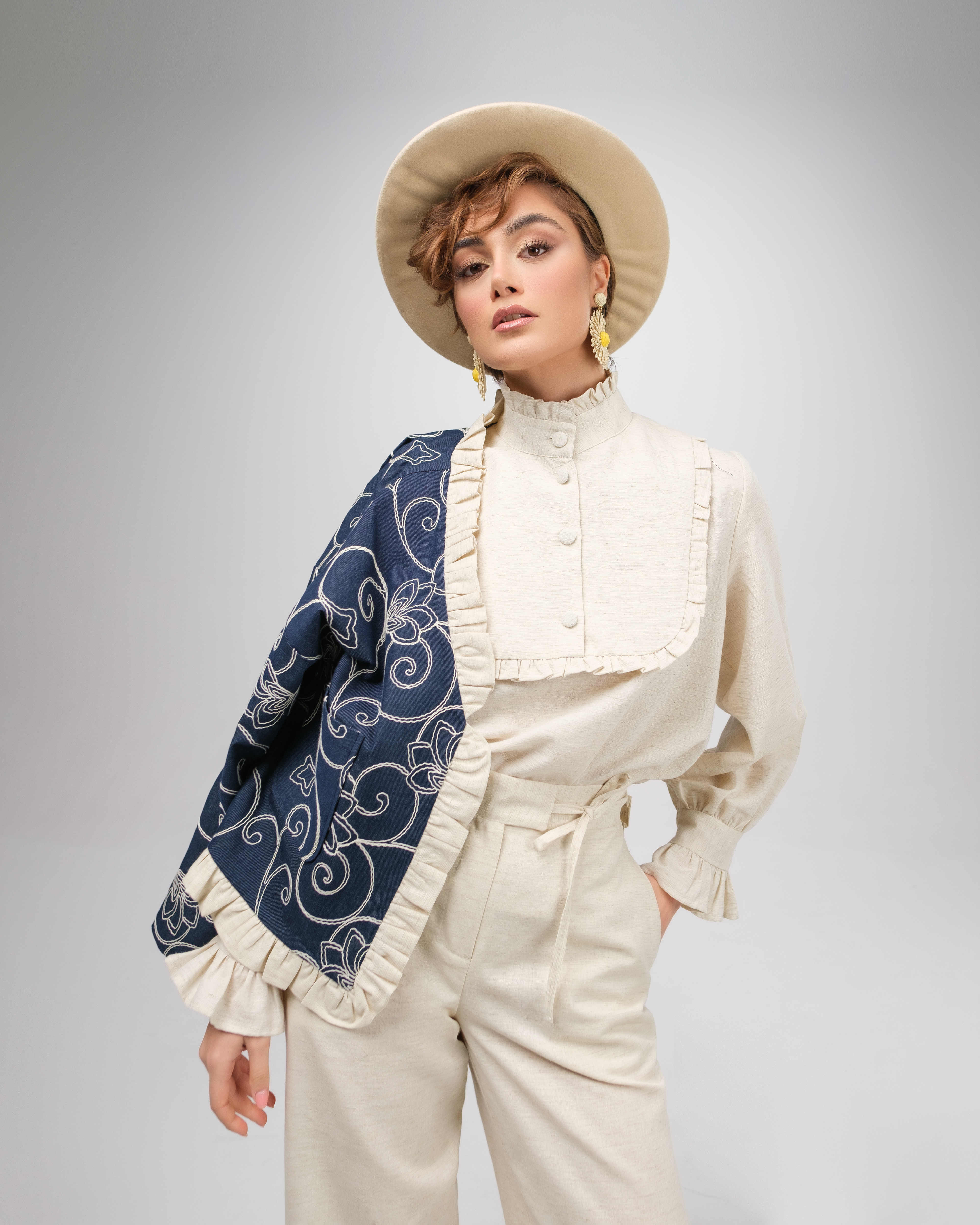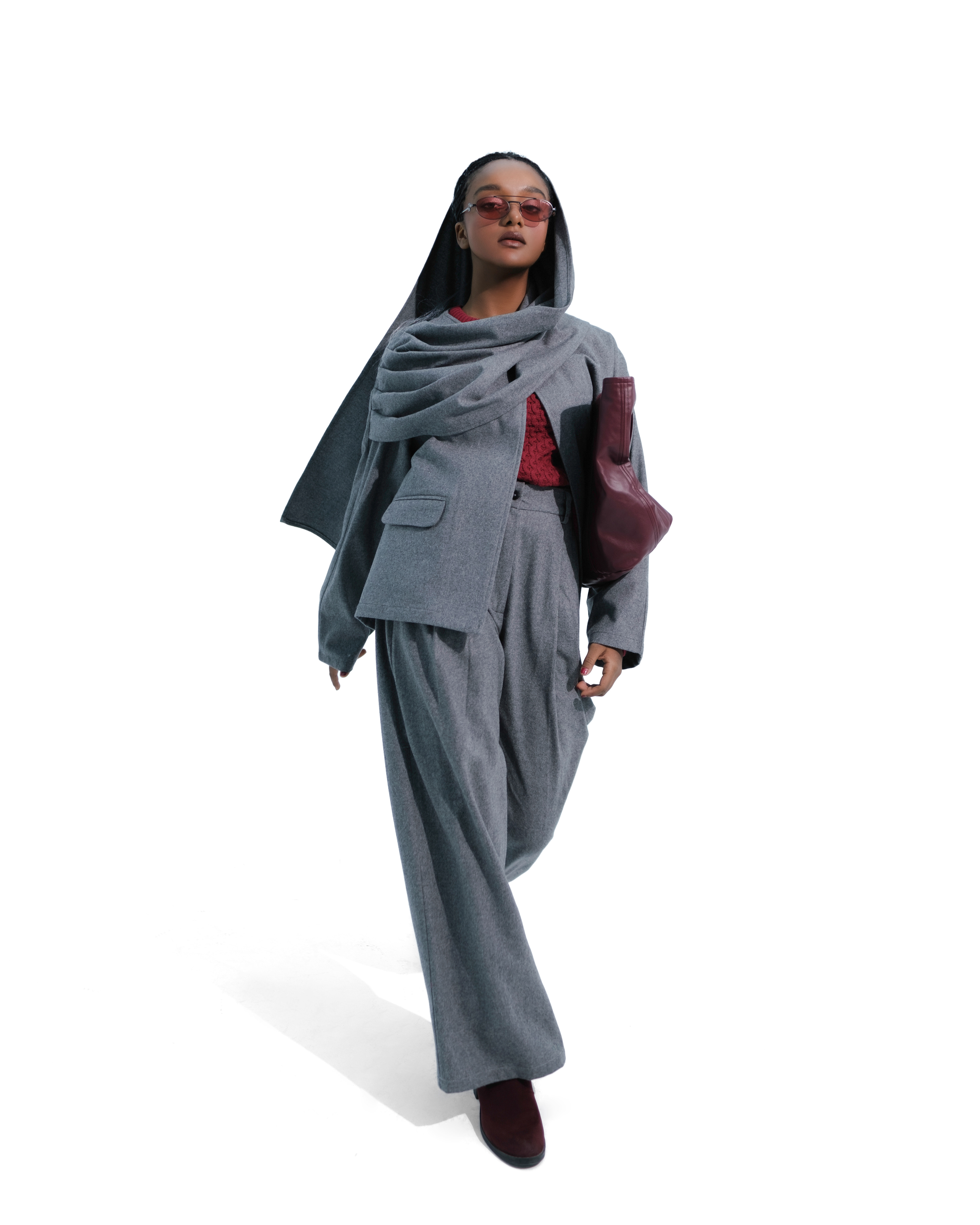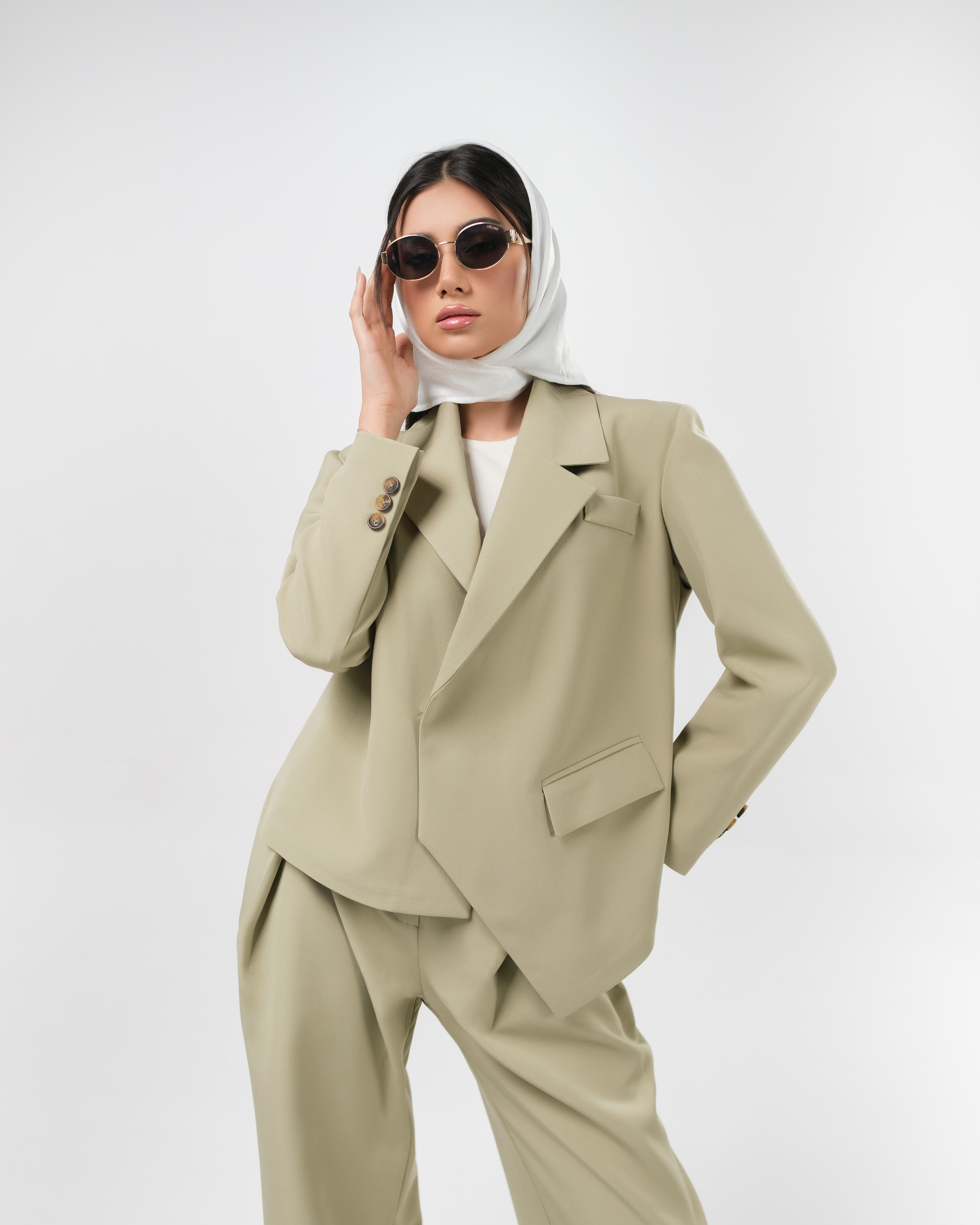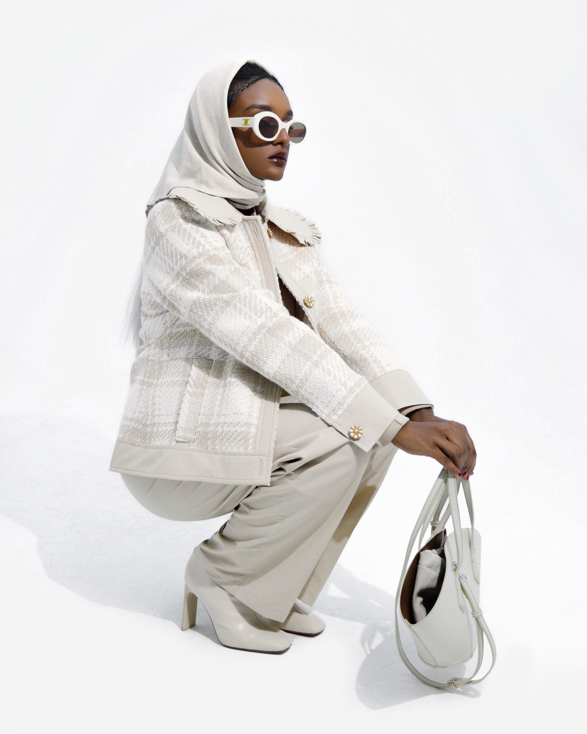 For Sepideh Sajadis Fall/Winter 2024 collection, we created a series of minimalist studio shots featuring model Samar, with makeup by Rozhin. The clean white background focuses attention on the designs, making the images ideal for both product display and website use.