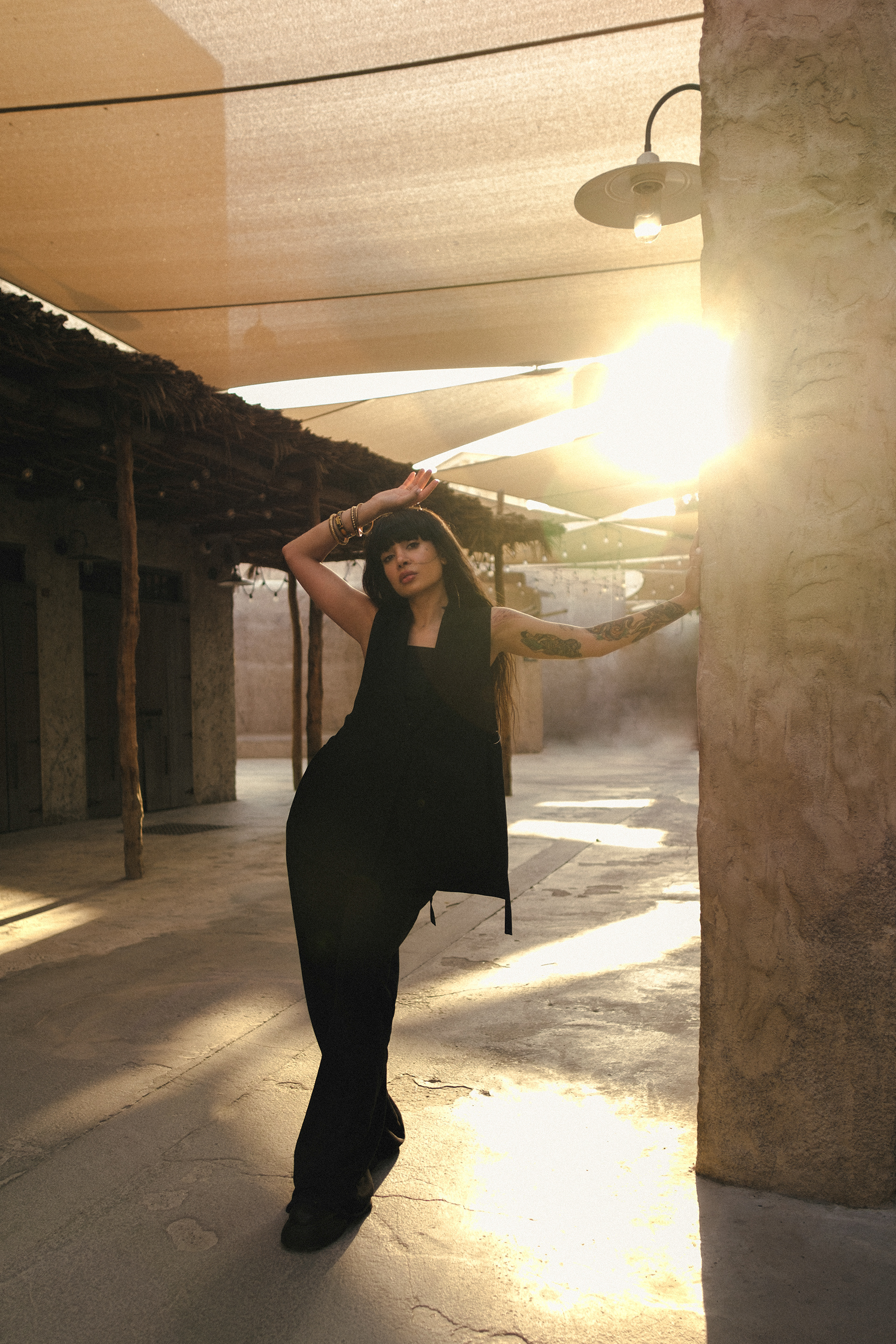 Amid the alleys of old Dubai, sunlight weaves through hanging fabrics,
